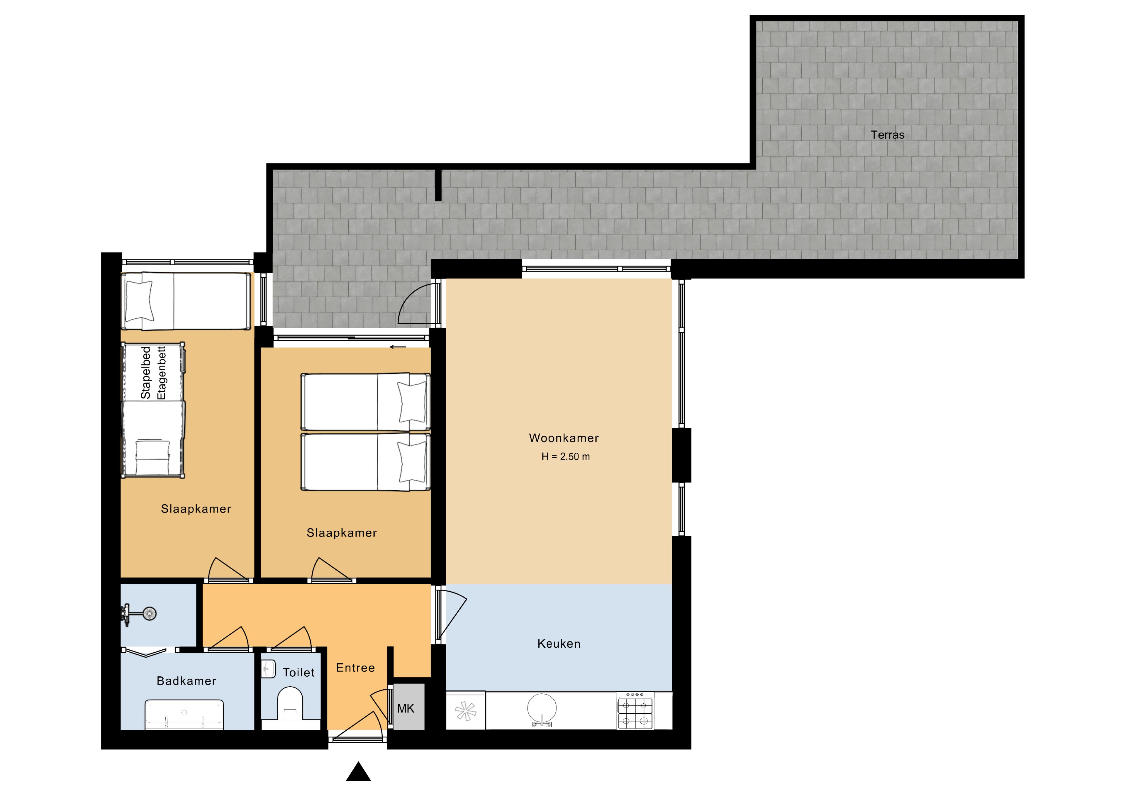 Noderstraun 44 heeft een open keuken, waardoor je altijd gezellig bij elkaar bent. Er zijn 2 slaapkamers. De ene slaapkamer heeft een tweepersoonsbed, de andere een stapelbed en een eenpersoonsbed. In de badkamer vind je een dubbele wastafel en een douche. De wc is apart. De indeling van deze woning is ideaal voor een gezin.