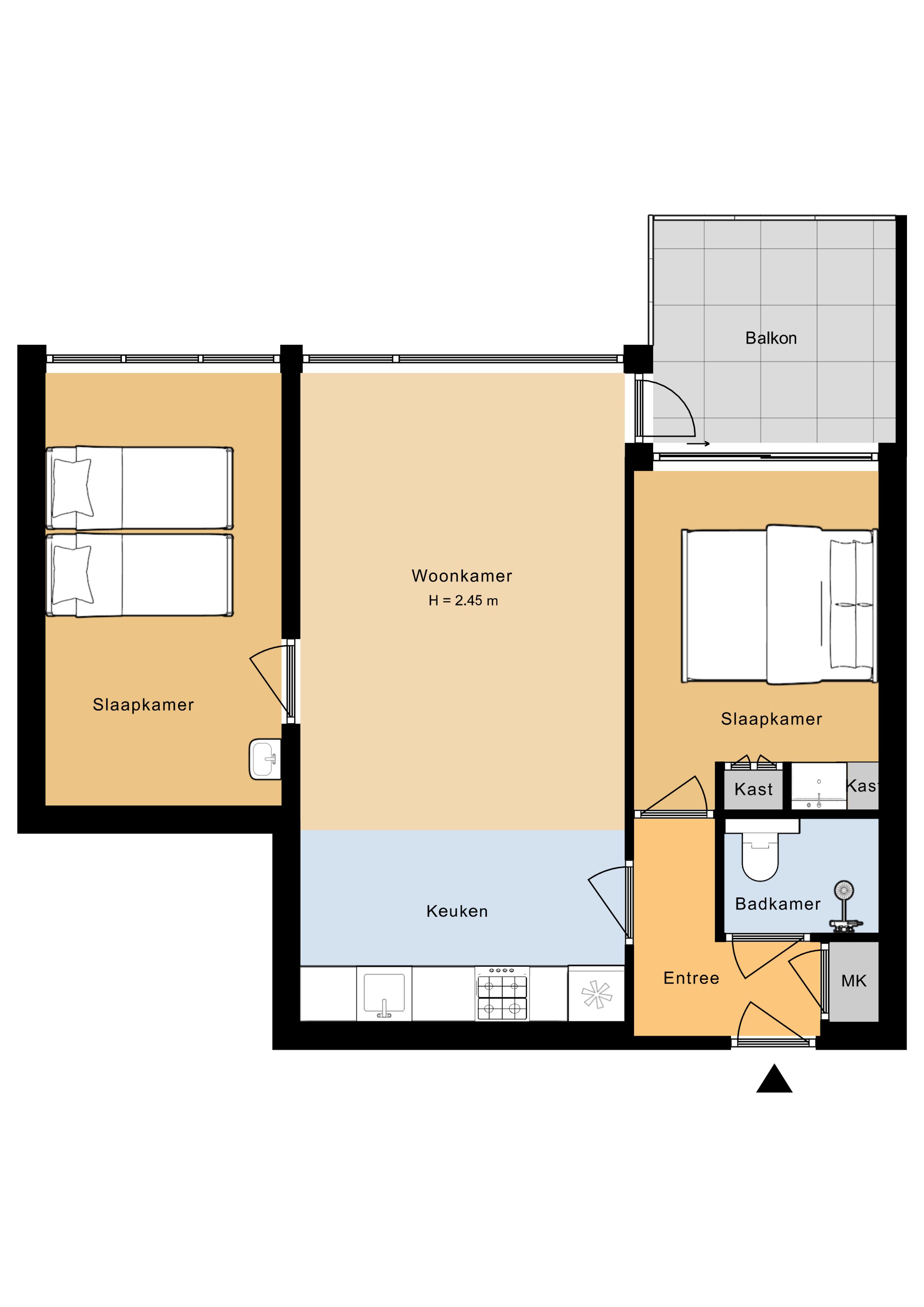Noderstraun 56 is modern ingericht. Met een open keuken en gezellige woonkamer ben je van alle gemakken voorzien. Het appartement heeft 2 slaapkamers. Iedere slaapkamer heeft een eigen wastafel. De moderne badkamer heeft een douche en toilet.