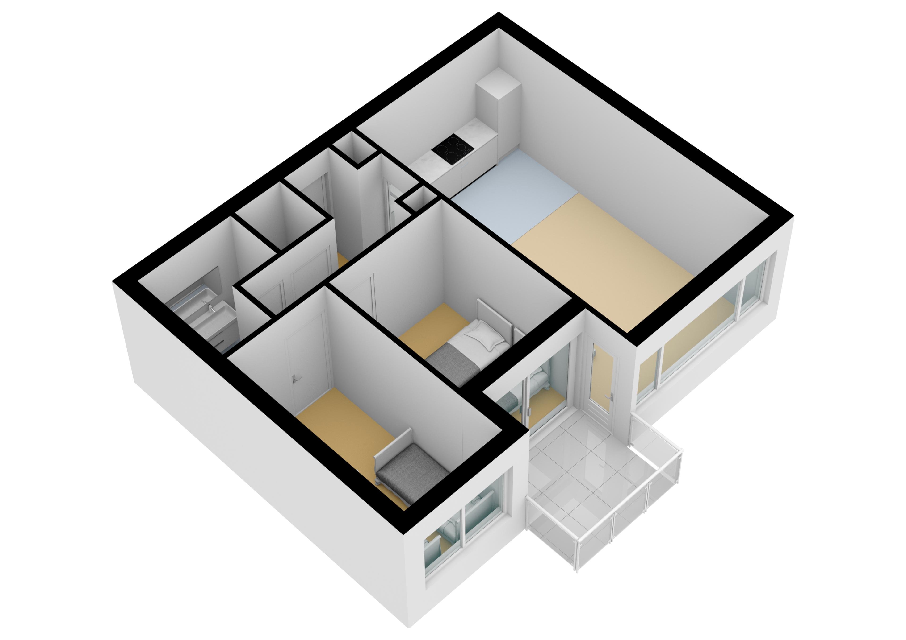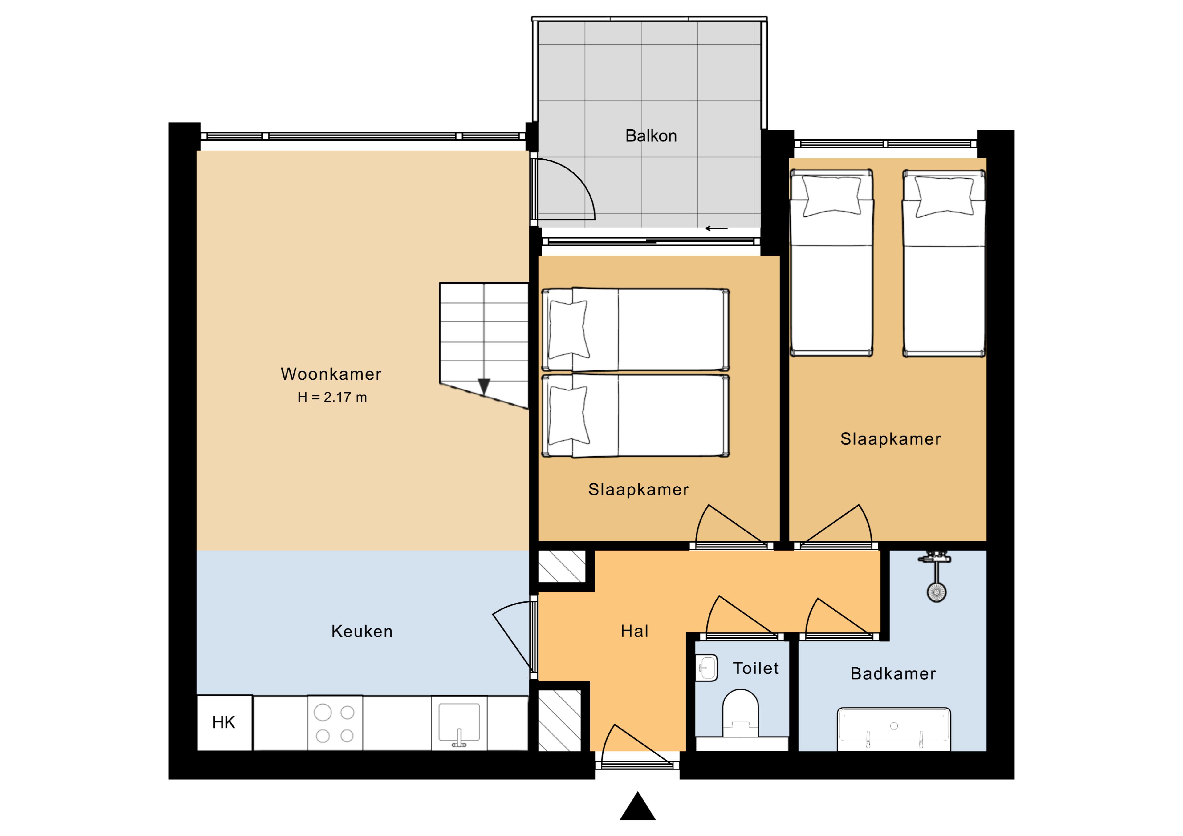 De moderne badkamer heeft een dubbele wastafel en een douche. Het toilet is apart van de badkamer. Er zijn 3 slaapkamers, elk met twee bedden. De woonkamer heeft grote ramen, waardoor je ook hier een mooi uitzicht hebt.