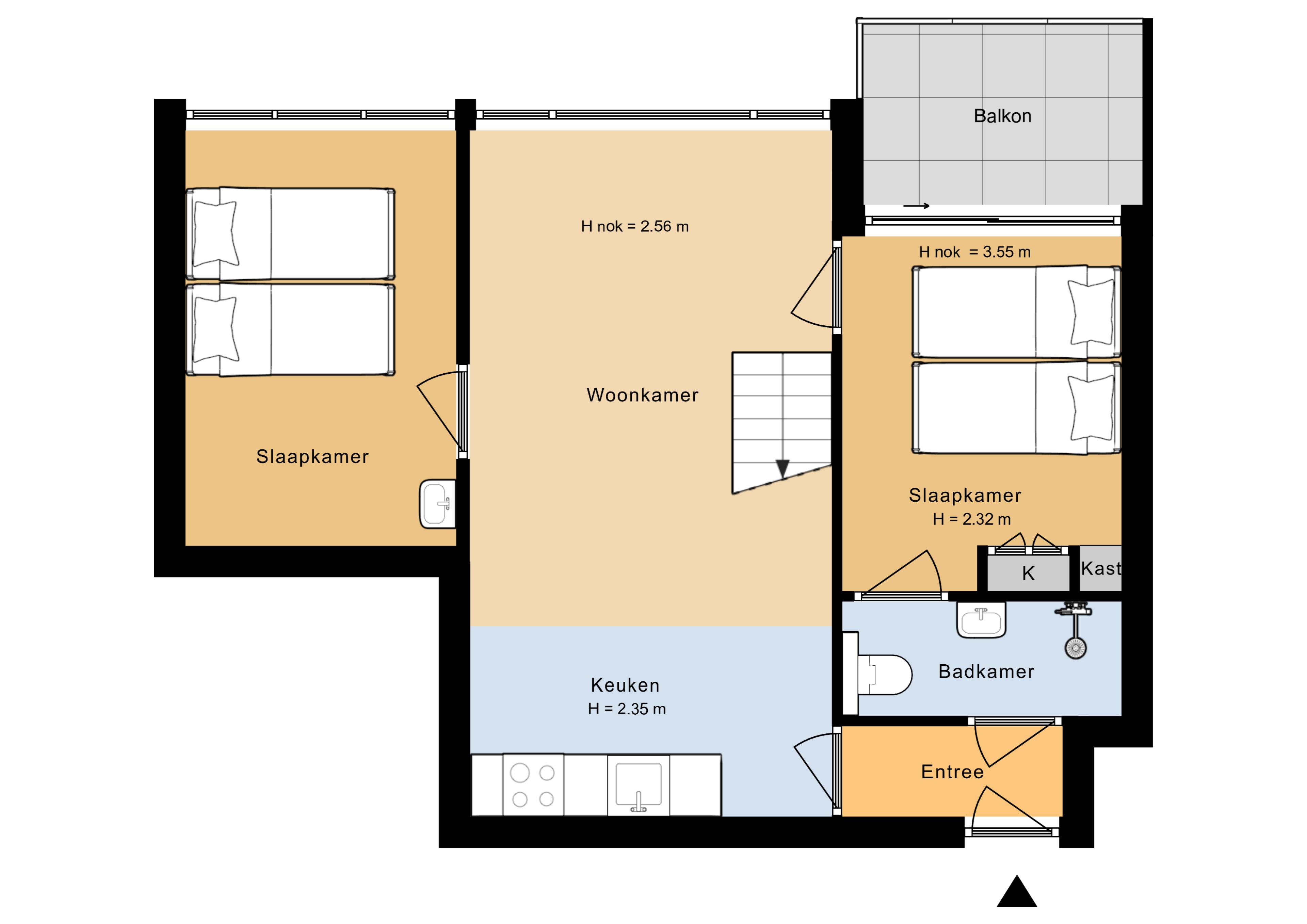 De open keuken is geheel gemoderniseerd en van alle gemakken voorzien. Vanuit de woonkamer heb je prachtig uitzicht. Er zijn 3 slaapkamers, waarvan eentje een wastafel heeft. De slaapkamer in de nok (met stahoogte) heeft een bed.