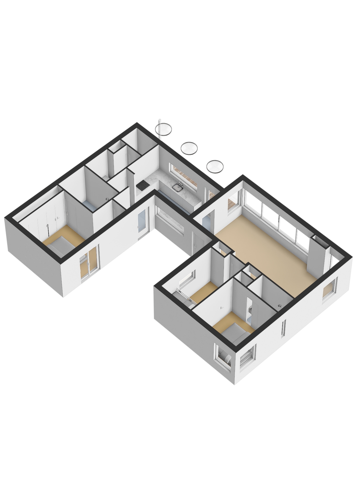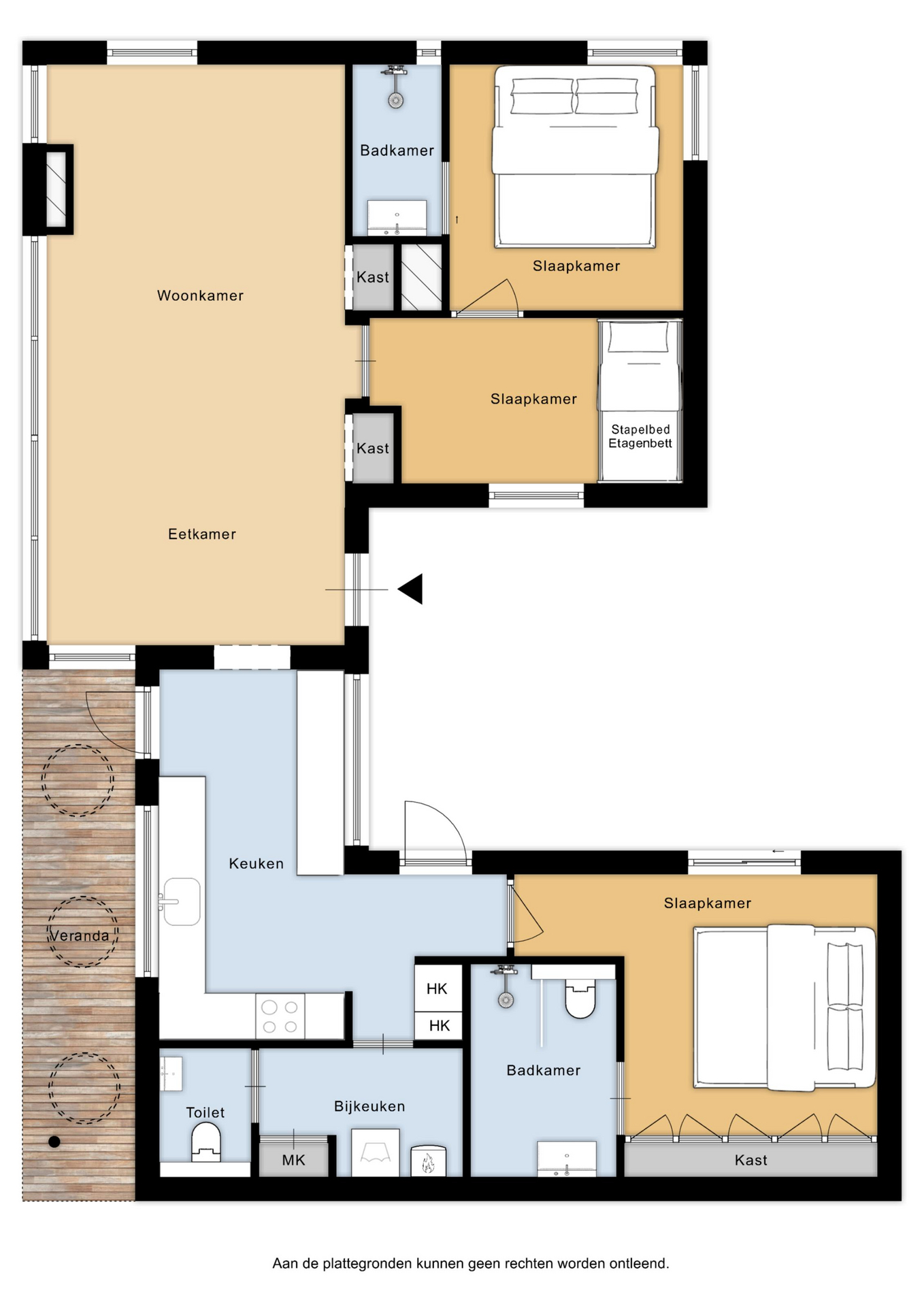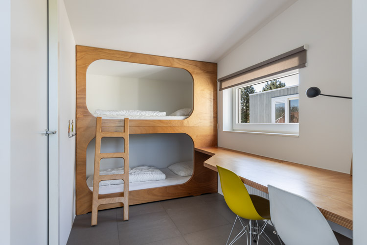 De ruime woonkamer met open keuken vormt het hart van de accommodatie. De goed uitgeruste keuken nodigt uit tot uitgebreid koken, en er zijn twee slaapkamers, elk met een eigen badkamer. Geen wachttijden, puur gemak. De royale doorgang naar één van de slaapkamers is ingericht als werkruimte en is ook voorzien van een stapelbed. Ideaal voor kinderen.