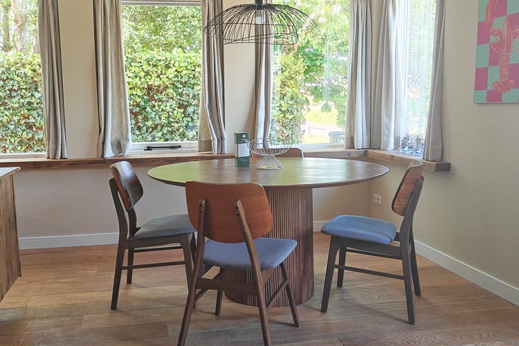 Eetgedeelte met openslaande deuren naar terras bij vakantiehuis Boszicht 16a Schiermonnikoog