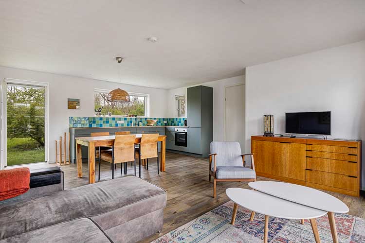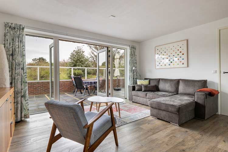 In het voorjaar van 2022 is Dieuwke volledig gerenoveerd en voorzien van moderne gemakken, zonder in te leveren op de knusse eilanduitstraling. De lichte woonkamer heeft openslaande deuren naar een beschut terras op het zonnige zuiden, waar je de hele dag kunt genieten van de frisse eilandlucht. De open keuken is uitgerust met een inductiekookplaat, oven, vaatwasser en een koelkast met vriesvak, zodat je gemakkelijk een maaltijd kunt bereiden. In de koudere maanden zorgt vloerverwarming voor extra comfort.
