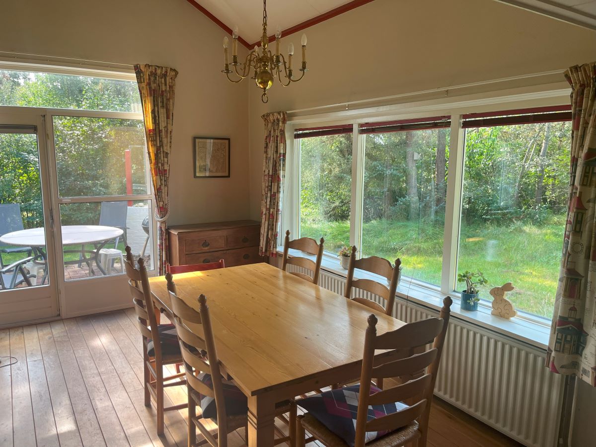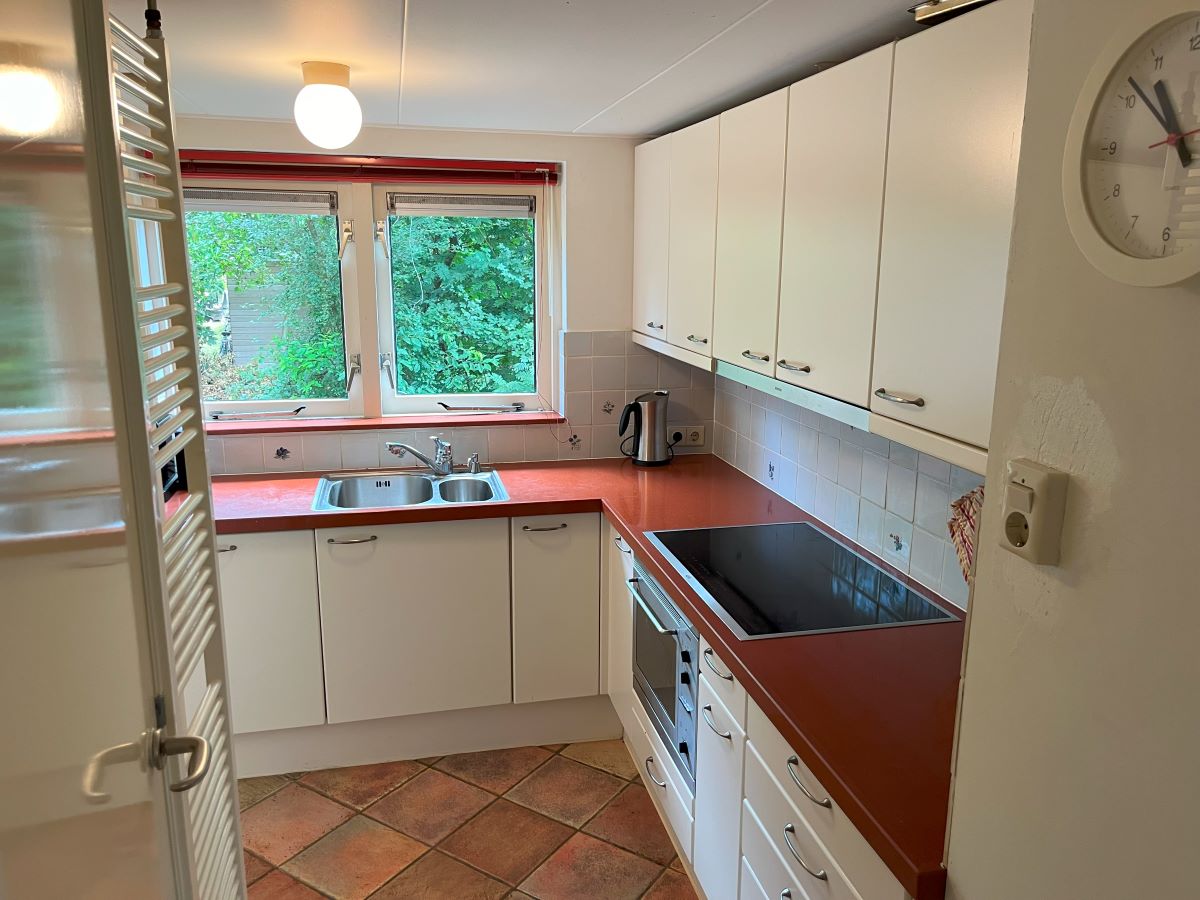 Geniet tijdens je verblijf aan de ruime eettafel voor zes personen, of ontspan met een boek terwijl je het vuur in de haard hoort knisperen. De L-vormige keuken grenst aan de woonkamer en biedt de benodigde voorzieningen.