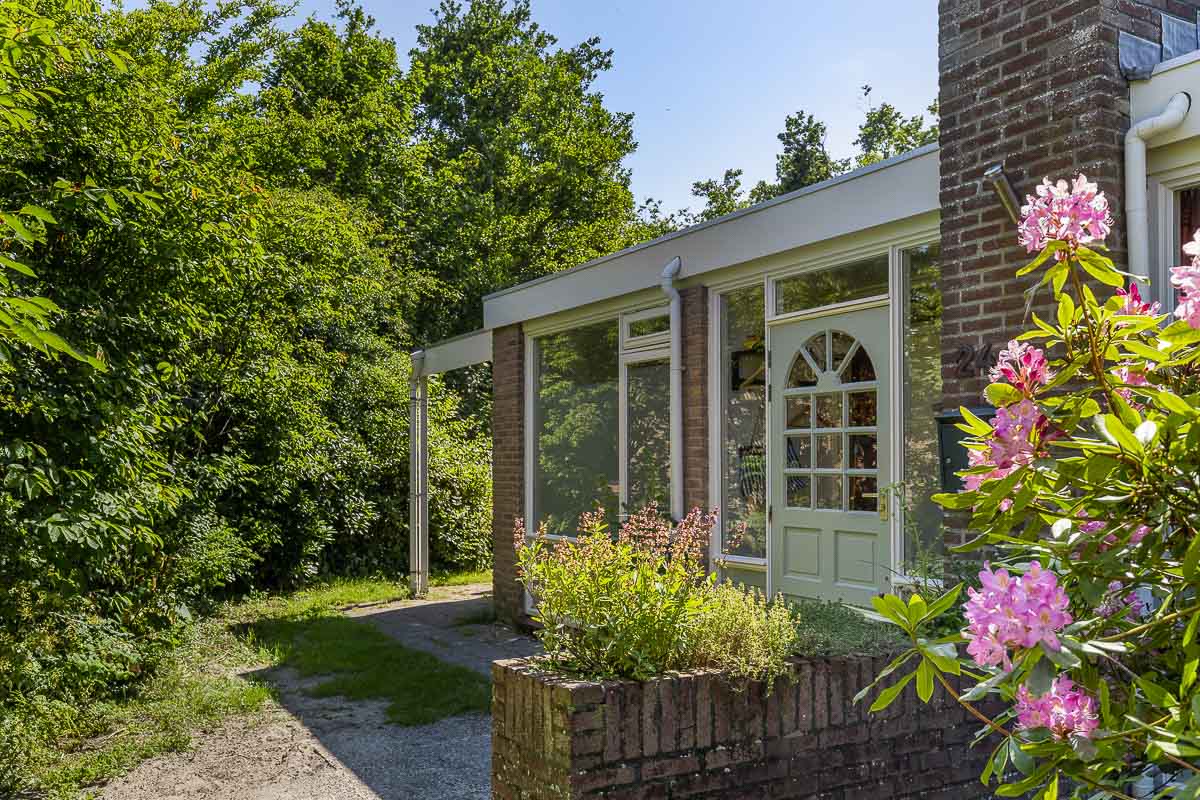 De openslaande tuindeuren grenzen aan een heerlijk zonneterras dat je kunt afsluiten voor kleine kinderen. De grote tuin is omgeven door bomen en struiken en biedt veel privacy.